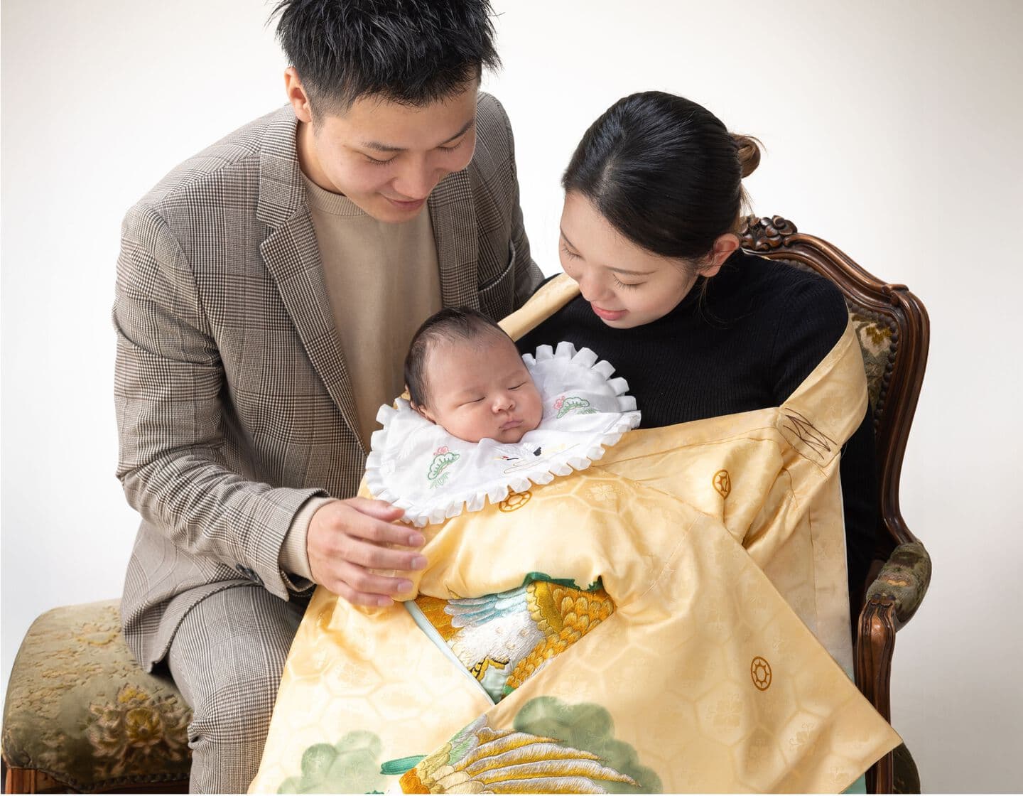 健やかな成長を願い、新しい家族の始まりを祝うお宮参り。一生に一度の記念すべき日を、美しい写真に残しませんか。伝統的な祝い着に包まれた愛らしい姿や、ご家族皆様の喜びの表情を、心を込めて撮影いたします。お宮参りの撮影をご予約いただくと、産着のレンタルが無料になります。衣装選びから着付けまで、すべて当館にお任せいただけますので、ご家族の負担を減らし、大切な一日に集中していただけます。